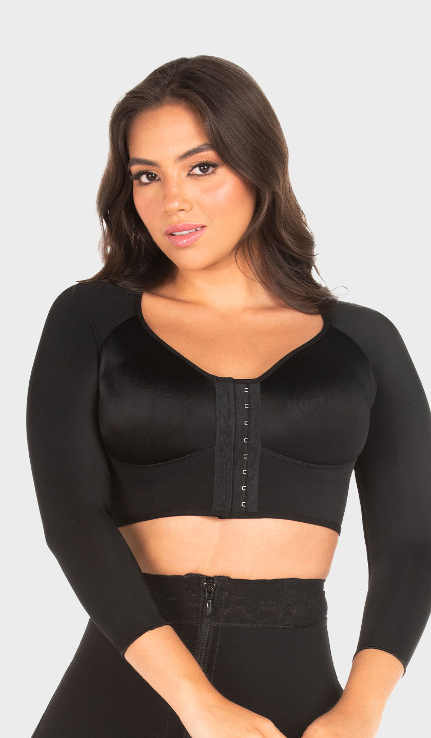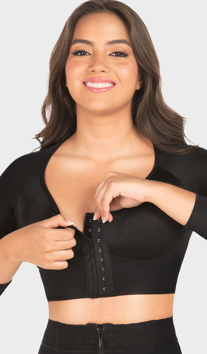 Nuestra Ref. B00204 es un brasier diseñado especialmente para ofrecer soporte y confort en procedimientos estéticos como cirugías de busto, brazos o lifting de brazos.